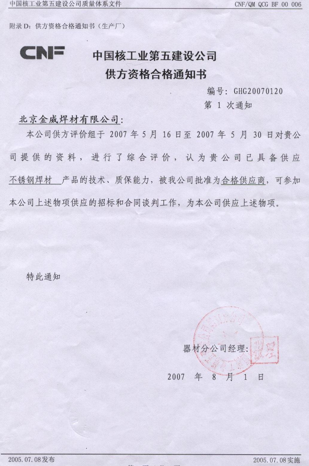中國核工業第五建設公司供方資格...