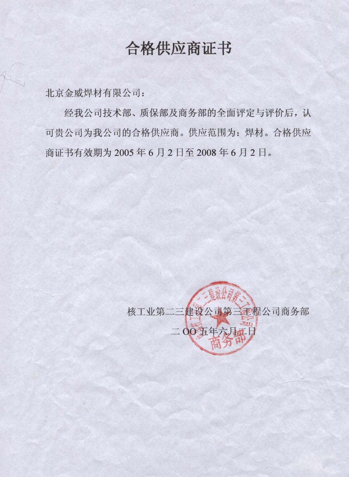 中國核工業第二三建設公司合格供...