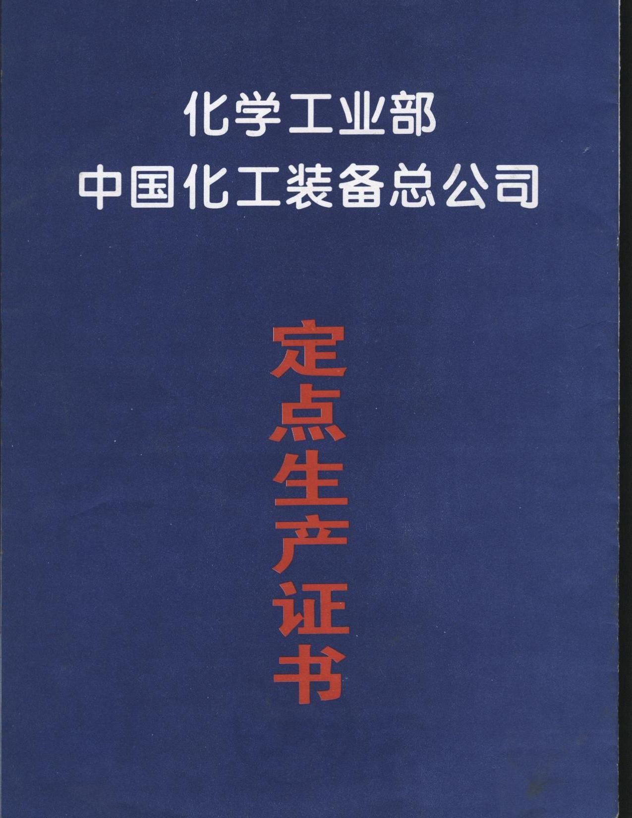 中國化工裝備總公司定點生產證書