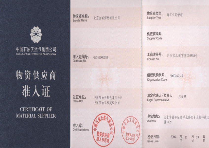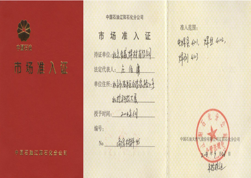 中國石油遼陽石化分公司市場準入證