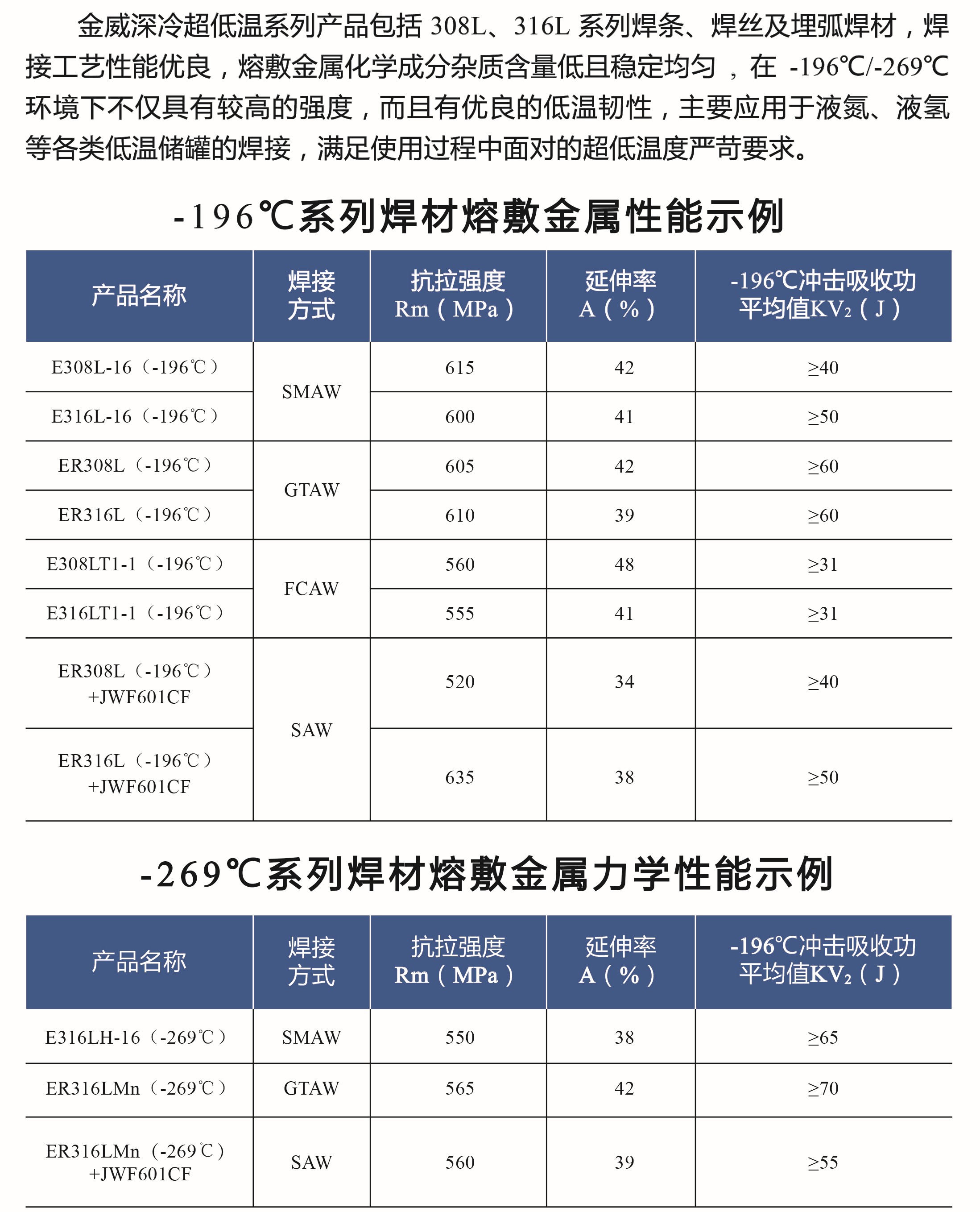 深冷超低溫不銹鋼系列焊材
